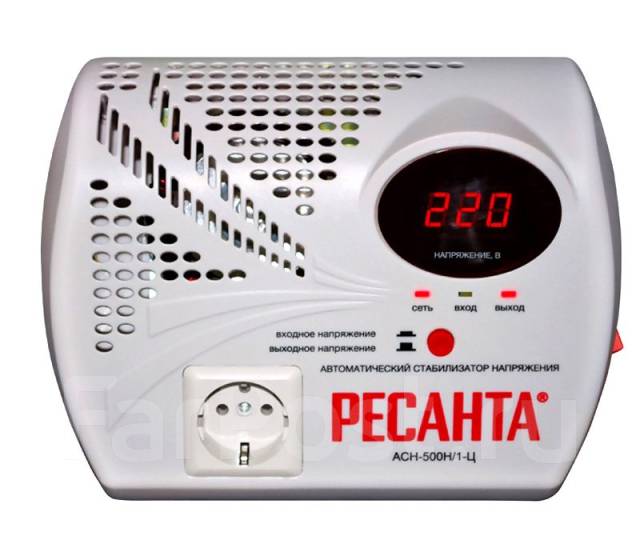 Appareil électronique à relais qui égalise la tension dans le réseau avec des appareils d'une puissance totale allant jusqu'à 1 kW. Il est connecté à un réseau 220 V. La vitesse de réponse est de 7 m/s, la tension de sortie est de 202 à 238 V. L'indicateur de tension est numérique. L'appareil peut être acheté pour 1,8 à 2,5 mille roubles.
