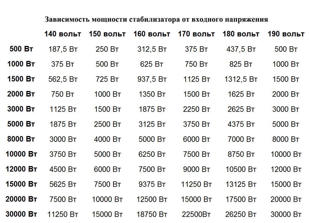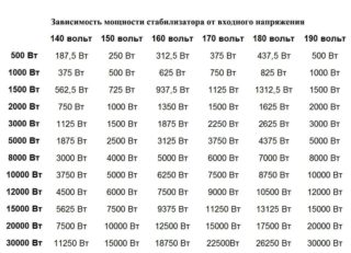 - Puissance de consommation des appareils ménagers. L'indicateur doit être supérieur à la puissance totale de l'équipement. Pour les appareils de faible puissance, les modèles 500-1000 W conviennent. Si plusieurs appareils sont connectés, il est préférable d'utiliser des stabilisateurs pour 1,5-2 kW.