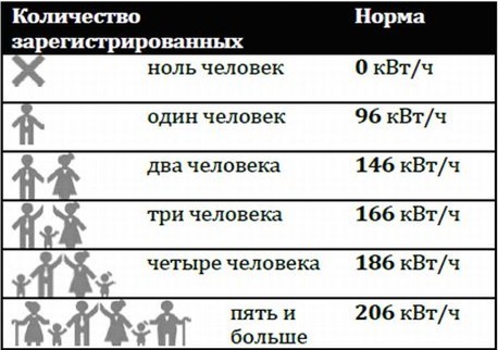 Le calcul est effectué en fonction du nombre de personnes enregistrées dans l'espace de vie séparément pour les célibataires et les familles. Pour ceux qui vivent seuls, la norme est de 95-135 kW par mois, selon la région de résidence et le niveau de développement des technologies d'approvisionnement énergétique. Pour les familles, la norme sera calculée en progression arithmétique en fonction du niveau de gazéification du logement. Cela tient compte de la nouveauté du bâtiment. Des équipements économes en énergie sont installés dans les bâtiments modernes, ce qui réduit la taille de l'ONP de 15 à 20 % par an.