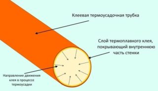Les consommables rétractables sont fabriqués à partir de polyéthylène ou d'autres polymères. Pendant le processus de chauffage, le produit devient 2 fois plus petit, il est donc facile de le choisir pour des fils de différentes sections. Le rapport de retrait optimal pour la section transversale est de 1: 2, 1: 3 et 1: 4.