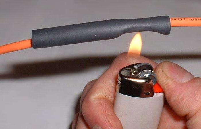 L'élément chauffant est utilisé comme alternative au sèche-cheveux. Pour le rétrécissement du diamètre, il est nécessaire de marcher le long de sa surface avec le boîtier du fer à souder. Vous ne pouvez pas travailler avec une piqûre :