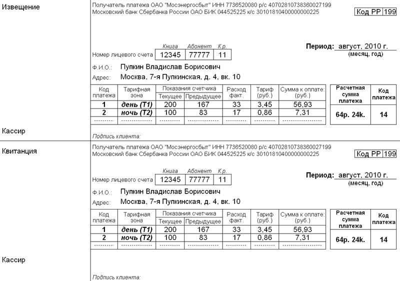 - Ensuite, vous devez écrire les données sur le consommateur - le payeur: nom complet, adresse, ainsi que le numéro du compte personnel.