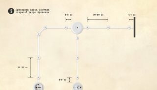 L'affaissement des fils lors de l'installation finale du câblage rétro à l'aide d'isolateurs n'est pas autorisé. Mais en même temps, il est nécessaire de prendre en compte si la maison continue de "s'asseoir" ou si elle est déjà installée. Dans ce dernier cas, il n'est pas nécessaire de trop tendre les fils, tant qu'ils ne touchent pas le mur.
