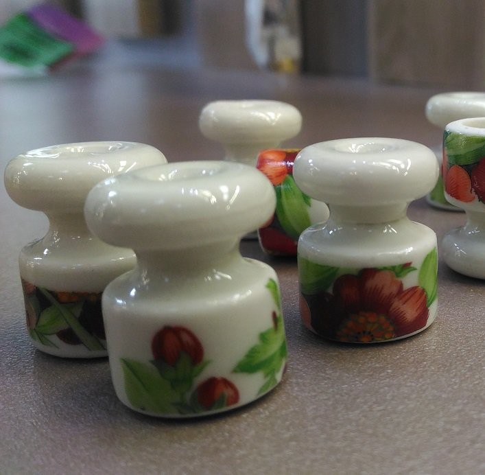 La fonction des isolateurs est assurée par des rouleaux en métal, en céramique et en plastique. Un fil y est fixé, grâce auquel la principale exigence de sécurité incendie est respectée: la distance entre le câblage et la surface combustible est d'au moins 12-18 mm.