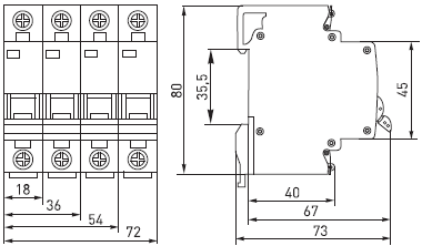 Lors de l'évaluation de la largeur des machines, ils partent du nombre spécifique de dispositifs de protection utilisés dans le tableau de bord, qui peuvent avoir une conception unipolaire ou multipolaire. La deuxième option concerne les réseaux triphasés. Dans le cas général, son application est limitée à cet ensemble particulier de fonctions, mais dans certaines situations, d'autres sens d'utilisation du rail DIN sont également possibles.