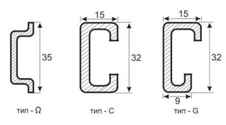 Les modèles en forme de C ont des bords latéraux pliés vers l'intérieur, de sorte que son profil vous permet de fixer des borniers de forme et de conception spéciales. La barre G est une modification légèrement modifiée qui est rarement utilisée et utilisée aux mêmes fins. La longueur de ces attaches, selon le fabricant, varie de 7,5 cm à 2 mètres, ce qui permet d'y placer de 4 à 96 pièces de protection avec la largeur standard d'un module de machine.