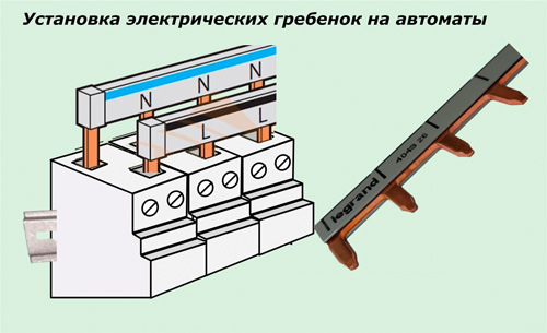Pour l'installation de produits électriques installés dans des armoires de distribution d'énergie, des jeux de barres et des jeux de barres de connexion de différents types sont utilisés. Un peigne spécial pour les machines est l'un de ces éléments dont il est difficile de se passer lors de la disposition des lignes de commutation. Il est utilisé pour la commodité de combiner une ligne d'appareils automatiques dans un panneau électrique, ce qui permet de se passer de cavaliers de fil difficiles à installer.