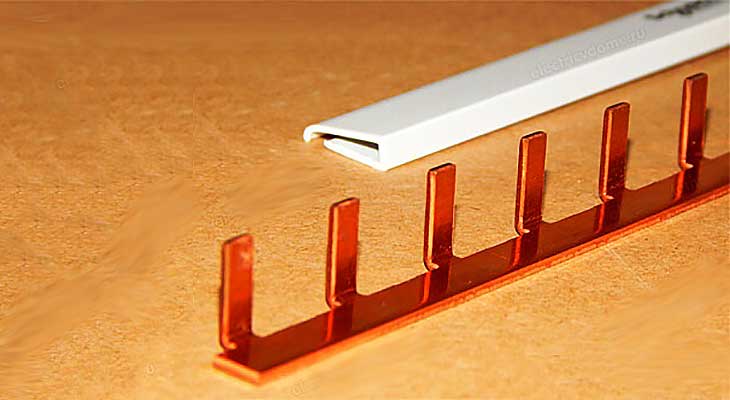 En règle générale, ces peignes sont vendus avec des règles standard déjà mesurées, dont le nombre de contacts de montage est différent. Par conséquent, avant la connexion, le nombre total de machines connectées est calculé et, compte tenu de leur épaisseur, une partie inutile du bus est coupée.