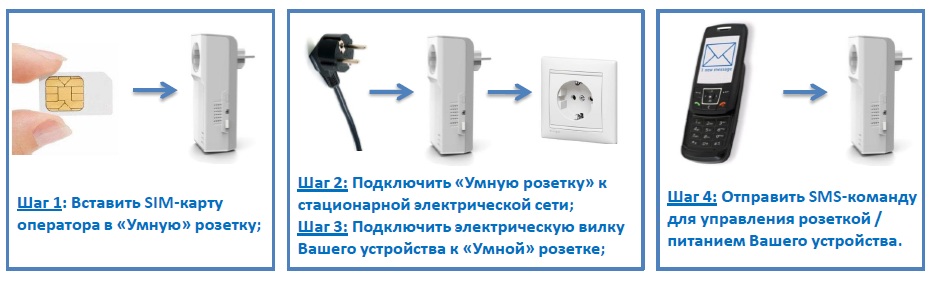 Lorsqu'une carte SIM est insérée dans la prise, elle peut être connectée à l'alimentation. Divers appareils électroménagers peuvent être connectés à la prise intelligente, que l'utilisateur contrôlera. Après avoir installé la carte SIM, vous devez lui envoyer un message ou passer un appel.