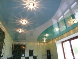 Pour les plafonds tendus, en règle générale, ils choisissent des luminaires avec des sources d'éclairage de type LED ou halogène, très rarement - des lampes fluorescentes. La consommation d'énergie et le chauffage des luminaires à LED sont minimes. En conséquence, le risque de jaunissement et de fonte de la feuille de plafond est également minimisé. Dans ce cas, la luminosité de l'éclairage ne souffre pas du tout.