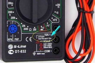 Si vous insérez les sondes d'un multimètre en mode de mesure de courant dans les trous de la prise, un court-circuit se produira dans le réseau et l'appareil de mesure tombera en panne. C'est bien s'il est équipé d'un lien fusible qui va simplement griller et déconnecter le testeur du réseau. Si un tel fusible n'est pas prévu par la conception de l'appareil, le multimètre peut s'enflammer voire "exploser" en raison d'une surchauffe.