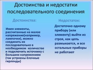 Les conducteurs menant aux bases de lampe et aux douilles sont connectés à un fil dans un assemblage parallèle. Les avantages incontestables de cette méthode incluent les caractéristiques suivantes :
