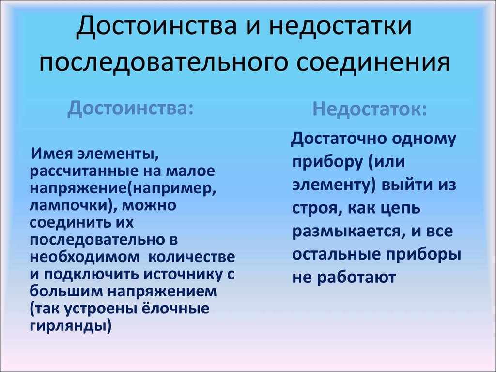 - si une lampe tombe en panne, tout le circuit est mis hors tension, de sorte que la ligne d'éclairage cesse complètement de fonctionner ;