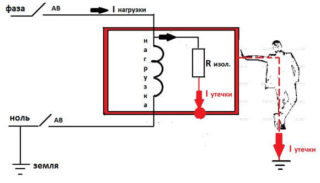 Si la couche isolante perd de sa résistance, une personne touchant le corps d'appareils électroménagers, la gaine de fil, la prise, la prise, l'alimentation en eau ou le tuyau de chauffage, les murs d'un immeuble résidentiel, agira comme un conducteur. À travers son corps, le courant de fuite s'écoulera dans le sol. Dans ce cas, il existe des risques de blessures partielles ou de mort.