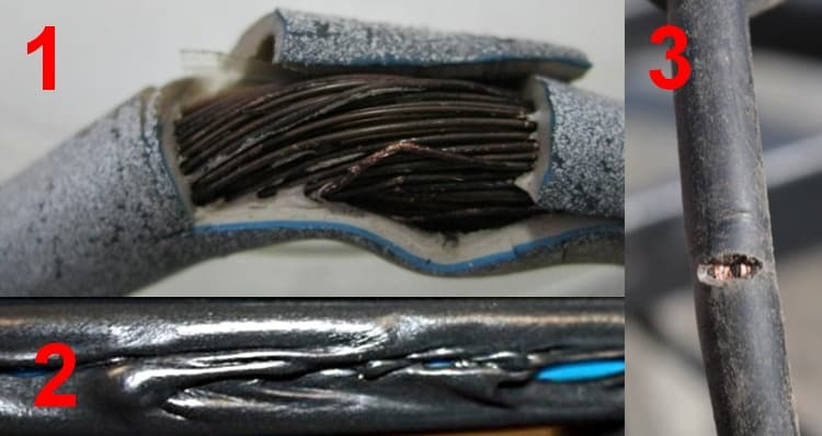 Avec une organisation cachée du câblage, il existe des risques d'endommagement des âmes de câble isolées. Ils se produisent dans de tels cas:
