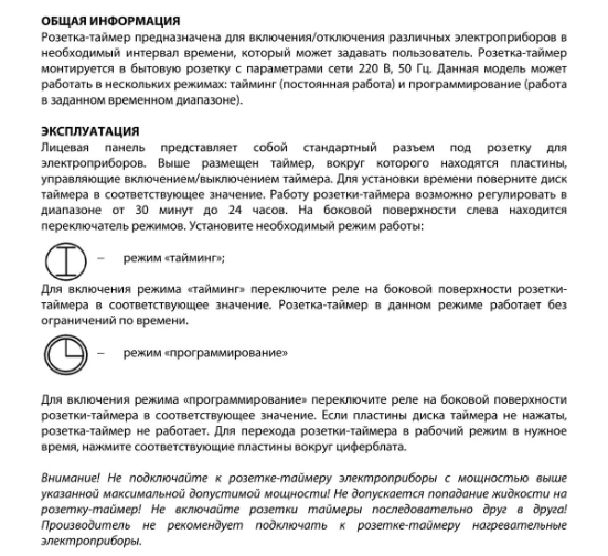 - l'indépendance par rapport à la tension du secteur peut conduire au fait qu'en cas de panne de courant d'urgence, la minuterie exécutera son programme et l'appareil contrôlé ne fonctionnera pas.