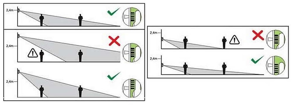Pour que l'utilisation de l'appareil apporte la plus grande efficacité, l'utilisateur doit savoir régler le capteur afin qu'il ne fonctionne que lorsqu'il est lu dans l'espace des personnes. Pour ce faire, vous devez régler l'indicateur de sensibilité sur un indicateur intermédiaire (ni grand ni petit) - avec ce réglage, le capteur ne répondra pas au mouvement de petits objets. Vous pouvez diviser la plage en zones de 45 degrés avec des limiteurs - la reconnaissance d'objet sera alors plus précise.