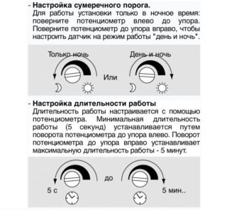 Les modèles de capteurs commercialisés sur le marché moderne sont équipés de régulateurs à l'aide desquels l'utilisateur définit les paramètres d'activation. Vous pouvez régler manuellement le niveau d'éclairage, la sensibilité et le délai d'extinction. L'angle d'installation doit être ajusté pendant le fonctionnement. Les modèles d'appareils plus anciens n'ont que deux de ces commandes, et lors de l'utilisation d'un tel appareil, il est recommandé d'acheter un indicateur lumineux supplémentaire.