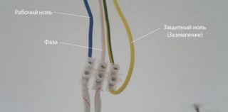 À la fin des mesures, vous devez marquer les conducteurs de la manière qui vous convient, plier le fil de terre (s'il n'est pas prévu de l'utiliser) sur le côté et isoler. Il n'interférera donc pas avec le travail et ne provoquera pas de court-circuit.