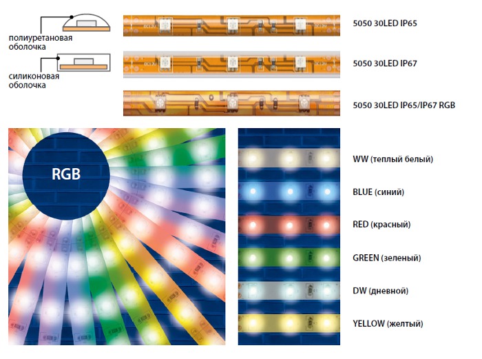 Chaque piste d'une telle bande fonctionne indépendamment, mais en même temps, elle n'émet qu'une seule couleur. Le changement dans le spectre, ainsi que la luminosité, se produit en raison d'un travail conjoint avec le contrôleur. Ce contrôle supplémentaire est généralement vendu en kit.