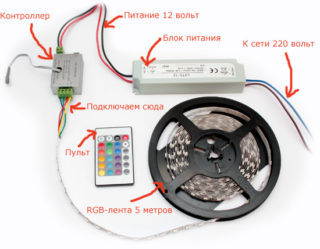 La tâche principale du contrôleur est de commuter les circuits de la source d'électricité au consommateur final. Le ruban est équipé de trois rangées de LED, dont chacune est de couleur différente, ou les trois couleurs sont réalisées sous la forme d'un cristal, par exemple de type 5050.