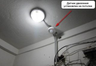 Un circuit sans interrupteur est assemblé à partir d'un détecteur de mouvement et d'un dispositif d'éclairage. C'est le plus simple et le plus rapide. La description est donnée dans la documentation fournie avec le détecteur et sur le corps de l'appareil.