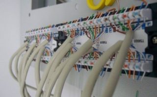 Sur la section du parcours allant du panneau de sol à l'entrée de l'appartement, le câble est posé dans une boîte. De la même manière, son câblage ouvert à l'intérieur sur les murs de l'appartement est établi. Dans ce cas, au lieu d'un conduit, des conduits de câbles standard ou des plinthes de conception spéciale (avec des vides pour la pose de fils) peuvent être utilisés. Ils ont des couvercles amovibles qui, après avoir été placés dans les niches de la paire torsadée, s'enclenchent simplement. Ensuite, le câble est passé jusqu'au point de sa connexion à la prise RJ 45.