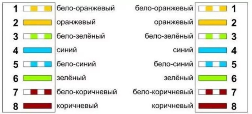 La paire torsadée est coupée selon des schémas spéciaux, qui peuvent être trouvés sur n'importe quelle page d'Internet sur le sujet concerné.