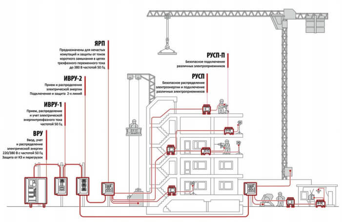 Lors de la construction de bâtiments, il est important de s'occuper à l'avance de l'électrification du chantier. Il est impossible de réaliser des travaux de construction sans l'aide d'appareils électriques. Tous les outils nécessaires - perceuses, bétonnières, marteaux perforateurs, machines à souder - sont alimentés en électricité. Il n'est pas toujours possible de créer une électrification standard, ils utilisent donc une alimentation électrique temporaire. Il est utilisé à la fois dans la construction de maisons résidentielles (appartements ou privées) et pour la construction de bâtiments non résidentiels.