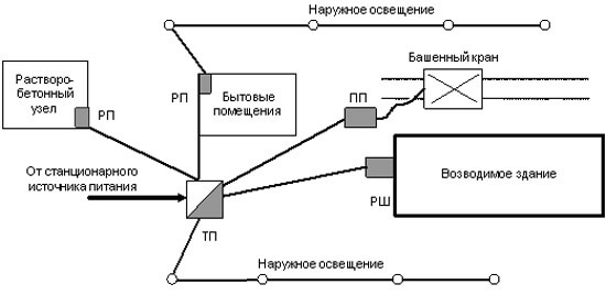 Le raccordement temporaire aux réseaux électriques pendant la période de construction s'accompagne de l'apparition de nouveaux itinéraires pour la pose de câbles d'une certaine marque et longueur. Toutes ces données doivent être reflétées sur le diagramme avant même qu'elles ne soient posées. Il existe plusieurs types de schémas de connexion - câblage radial, en anneau, mixte.