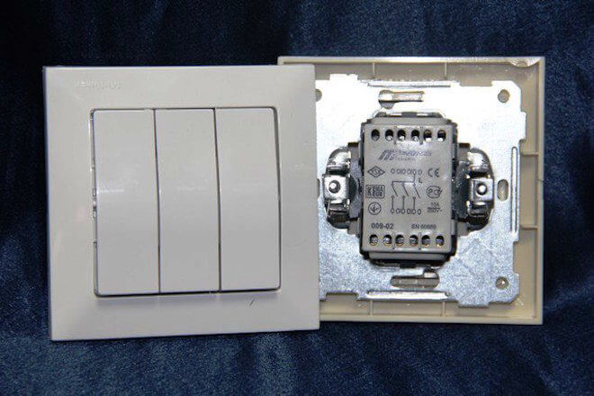 L'une des variétés d'interrupteurs ménagers est représentée par un dispositif de commutation à trois touches, grâce auquel le modèle de fonctionnalité accrue est facilement reconnu. Un triple interrupteur permet de commuter plusieurs charges à la fois dans la maison, ce qui détermine l'importance de son utilisation dans les réseaux d'éclairage domestique.