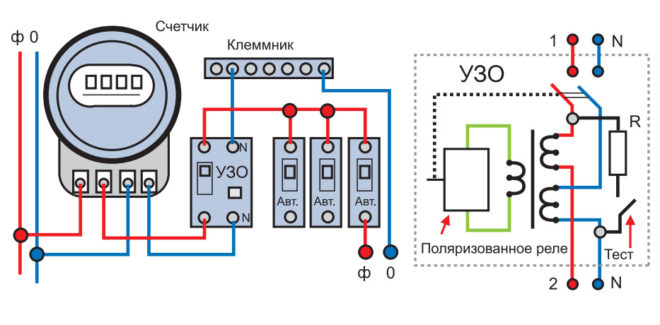 Cette option implique l'inclusion de l'appareil dans un circuit général pour protéger tout le câblage domestique. Pour cette méthode, il est nécessaire de connecter des RCD et des connexions sortantes.