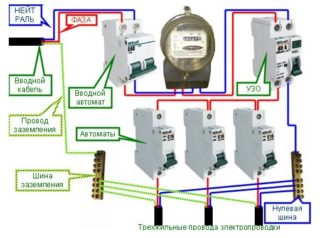 Les maisons de campagne modernes se distinguent par un système d'alimentation développé avec une bonne protection contre les chocs électriques en raison de la présence d'une mise à la terre. Par conséquent, ils utilisent des schémas simplifiés impliquant l'utilisation de DDR universels pour des courants de fuite jusqu'à 30 mA (pour la protection séparée d'un chauffe-eau, par exemple). Mais le plus souvent, la préférence est donnée aux dispositifs différentiels typiques conçus pour la coupure appropriée pour les surcharges.