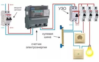 Un circuit typique pour connecter un RCD dans un réseau monophasé avec mise à la terre est construit selon les mêmes règles, selon lesquelles il est monté immédiatement après le compteur d'énergie. La différence réside dans la présence d'un bus séparé, qui est posé en contournant l'ensemble des dispositifs de protection. Dans le même temps, la fiabilité de fonctionnement de chacun des appareils est considérablement augmentée en raison de fuites importantes dans le circuit "phase - boîtier d'équipement - terre".