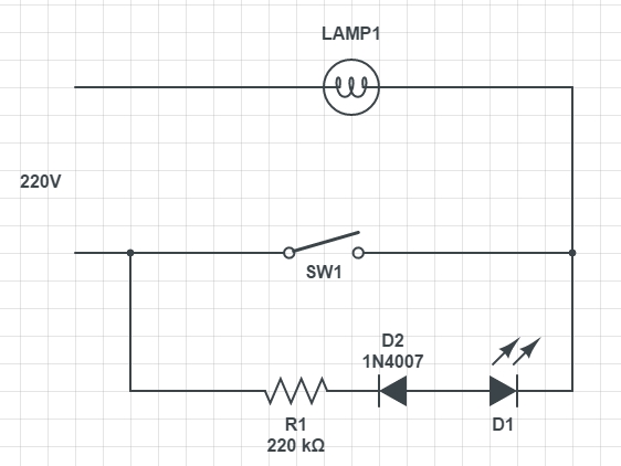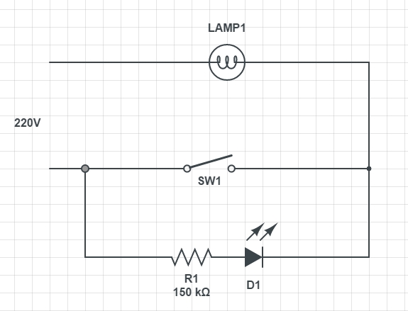 Le rétroéclairage de l'appareil se compose de lampes au néon ou de LED à résistance connectées en série les unes avec les autres. Ce petit circuit est connecté en parallèle avec le contact de l'interrupteur. Le circuit est toujours sous tension, que la lumière soit allumée ou éteinte.