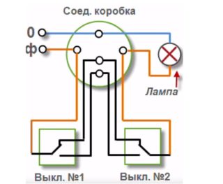 Les propriétaires de longs couloirs ont souvent besoin de connecter deux interrupteurs par ampoule afin de contrôler le luminaire des deux extrémités de l'allée. Cette configuration est également utilisée lors de la montée d'un escalier ou dans des pièces spacieuses pour contrôler une lampe sans sortir du lit. L'inconvénient de cette option est l'incertitude de la position des boutons marche-arrêt.