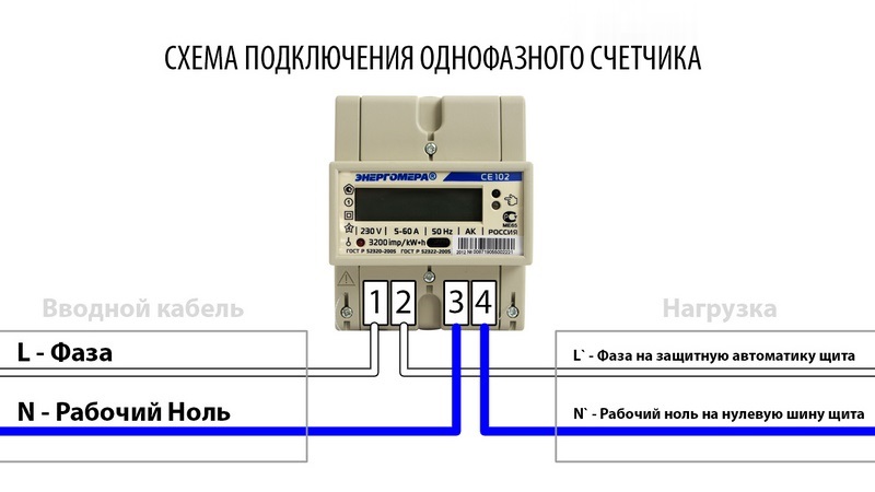 La séquence de connexion d'un compteur d'électricité monophasé est indiquée dans le passeport, les instructions ou le formulaire du fabricant. Vous pouvez trouver le schéma dans le manuel d'instructions ou au dos du couvercle du terminal.