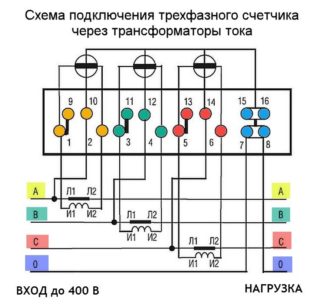 Le circuit de compteur triphasé est mis en œuvre directement ou indirectement. La première option convient aux consommateurs de faible puissance, la seconde aux équipements d'un réseau triphasé.