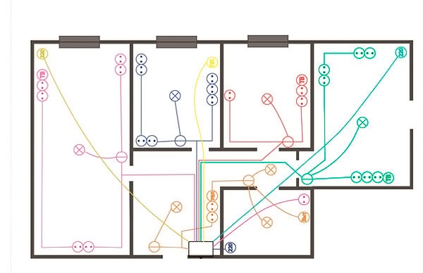 - Tous les appareils d'éclairage sont connectés à un groupe et d'autres appareils électriques plus puissants à un autre. Il est censé connecter les câbles via des machines séparées.