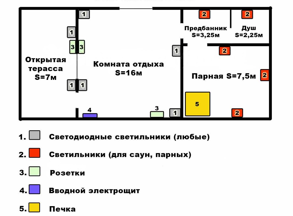 Il est possible de faire de l'éclairage dans le sauna de vos propres mains si vous suivez les principes et règles généraux. Tout d'abord, un plan est créé avec une indication détaillée de l'emplacement des lampes, de leur puissance, du nombre requis de prises et d'interrupteurs. Pour le câblage, vous avez besoin d'un câble de la taille appropriée. Vous devriez consulter un électricien compétent, la continuité et la sécurité de l'ensemble du système en dépendent.