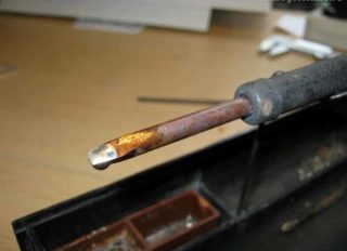 - L'outil de travail est chauffé et la surface est recouverte d'une couche de colophane ou de fondant. Le premier ne fonctionne pas bien sur les surfaces oxydées ; avec une pénétration profonde dans la torsion, il est important de pré-traiter soigneusement les matériaux.