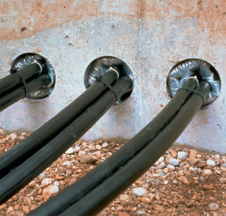Afin d'éviter d'endommager l'entrée de la structure aux points de câblage à travers les murs ou les fondations, le câble est posé dans un tuyau en métal ou en plastique.