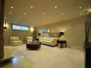 Traditionnellement, le salon et le hall sont des pièces de grande surface. Les projecteurs sont les auxiliaires du lustre principal. La lumière doit être vive et uniforme.