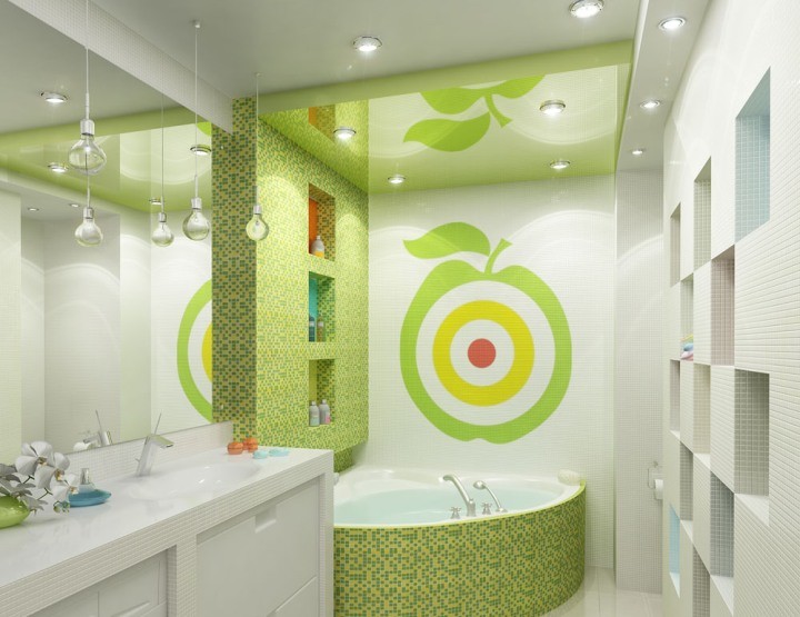 En règle générale, l'éclairage de la salle de bain est divisé en 3 niveaux : plafond supérieur, mise en évidence des zones individuelles et éclairage du niveau du sol. Il est recommandé d'éclairer le niveau inférieur avec une bande LED. Éclairage général et plafonnier - par spots. Le schéma des lampes sur un plafond tendu n'est pas si critique, tout dépend des préférences du propriétaire de l'appartement. Une plus grande attention doit être accordée à la protection du boîtier contre l'humidité et la poussière.