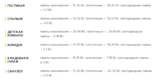 - Comptage en tenant compte de la puissance des lampes et de la superficie de la pièce. Donne des résultats relativement précis, mais ne peut être utilisé que pour les luminaires LED. De plus, la formule de calcul ne prend pas en compte les coefficients de gradation, d'irrégularité et de marge, qui ont un effet significatif sur l'intensité du flux lumineux.