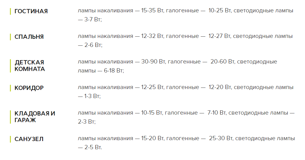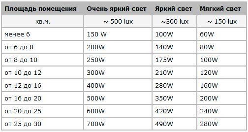 Le résultat, obtenu par des formules et des calculs en ligne, ne donne que le niveau d'éclairage minimum de la pièce conformément aux exigences du SNiP.Si l'une des lampes tombe en panne et que vous ne trouvez pas de remplacement tout de suite, l'éclairage diminuera considérablement. Par conséquent, la meilleure solution serait de calculer le nombre de luminaires en fonction de leur niveau de puissance.