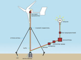 Un astérisque est installé sur l'arbre d'un tel moteur électrique, qui, au moyen d'une chaîne à rouleaux, est entraîné en rotation à partir de pales de vent artisanales fixées à un cadre de vélo. Avec leur aide, le mouvement de translation du vent est converti en un moment de rotation. Cette conception est capable de générer un courant de charge allant jusqu'à 6 ampères à une tension de 14 volts.