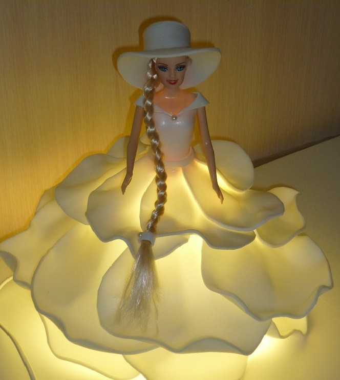 La lampe de poupée, si vous le souhaitez, peut être décorée avec des strass, des perles, des étincelles et d'autres décorations.