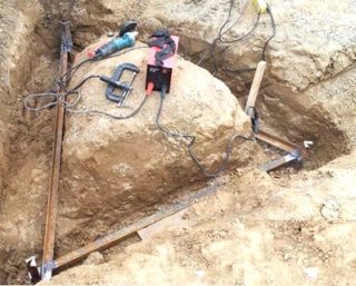 - Avec un marteau vibrant, la structure est immergée dans le sol, laissant 20 cm pour attacher une autre tige.