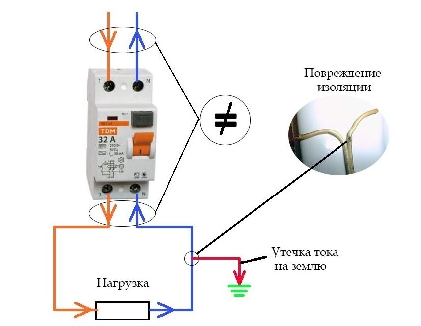 Lorsqu'un équipement connecté via un RCD avec une boucle de terre entre en contact, une fuite de courant se produit immédiatement. Il se produit lorsqu'une phase est fermée sur le corps de l'équipement. La machine s'active, coupe la connexion, le courant est dévié dans le sol.